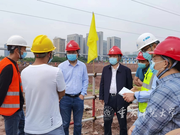 5月17日上午,重庆市教委基建后勤处处长陈明政一行到我校大学城校区重庆应用数学中心建设项目施工现场检查工作。在副校长孟小军等人陪同下,市教委一行察看了项目施工现场以及临时办公区、生活区等,并在现场召开专题工作会。