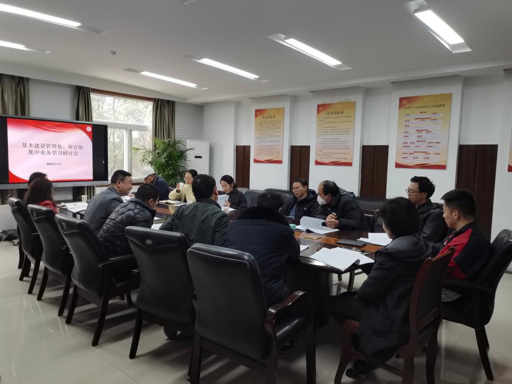 2023年3月2日下午,基本建设管理处、审计处联合在基本建设管理处二楼会议室召开集中业务学习研讨会。本次会议旨在学习文件,掌握政策,提高工作效率,规范工作流程,防范化解风险,推动我校基本建设管理工作朝着法制化、规范化、廉洁化方向发展。学习研讨会议由基本建设管理处副处长包瑜和审计处处长彭刚联合主持,基本建设管理处所有现场代表及审计处职工共同参与。